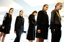 For LAMARCK, what remains constant, however, is Morishita’s commitment to using original textiles and ornamentation. He uses wool produced in Niigata Prefecture, an area renowned for its fiber, and has dabbled in linen as well as washi knits. Embroidery also figures prominently in his work with his 2014 autumn/winter collection including exquisitely embroidered dresses. This same collection saw Morishita make use of a wool-and-film blend, a soft, somewhat shiny fabric that added instant interest to both solid black outfits and brightly colored dresses.