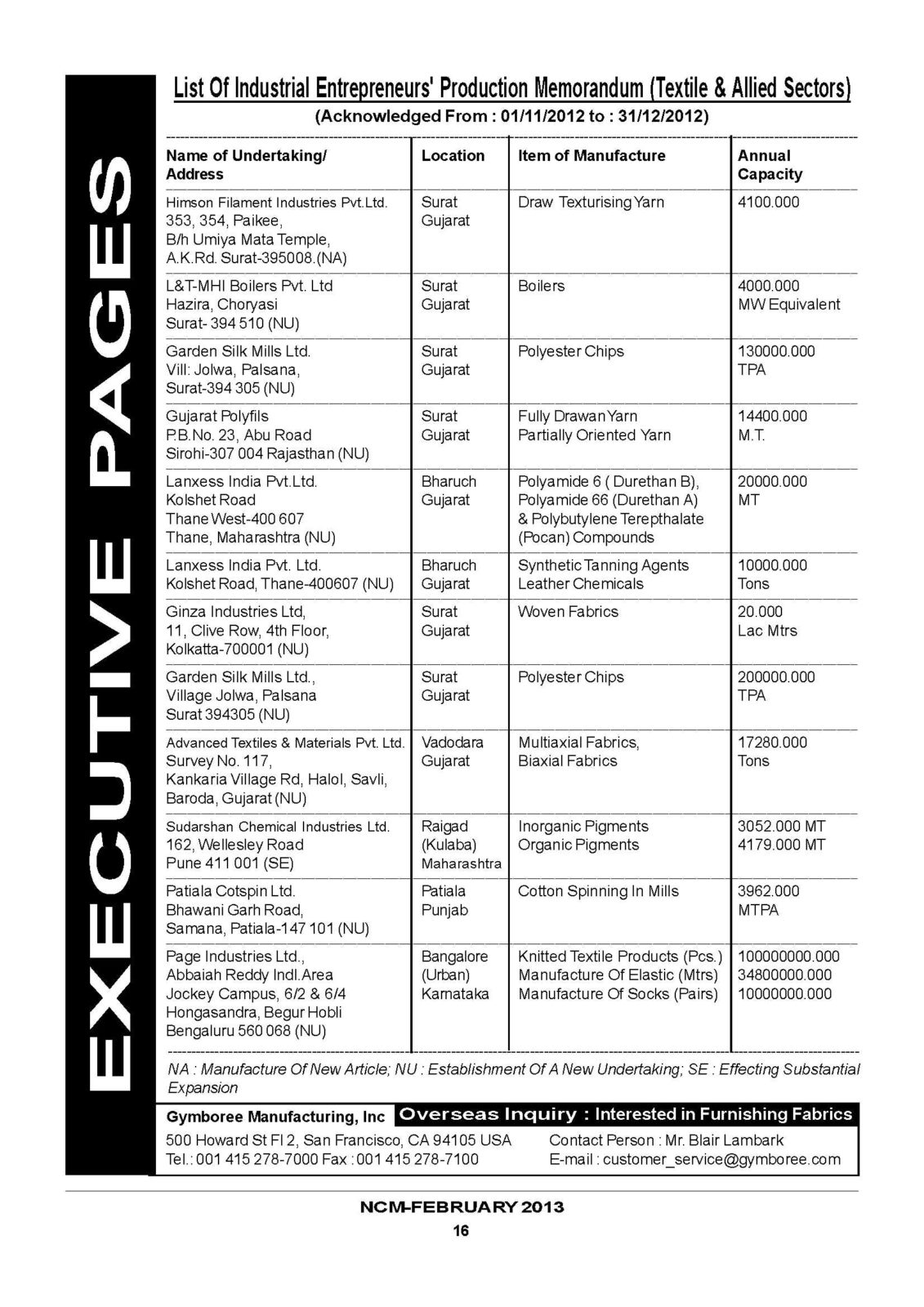 List Of Industrial Entrepreneurs’ Production Memorandum – NCM February 2013