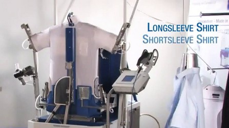Flexible sleeve tensioners : Universal use: The shirt finisher can be used for short sleeved and long sleeved shirts thanks to the universal cuff tensioning devices. Cycle times are short since there is no shift key.