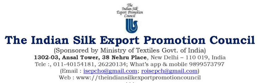 Dear Members, We have the pleasure to inform you that the Indian Silk Export Promotion Council is organizing 10th Edition of India International Silk Fair cum RBSM, which is the only established National Show of India’s biggest Trade Event on Indian Silk and Silk Blend product exhibiting and a must business destination to connect & collaborate with manufacturers, suppliers – all under one roof such as fabrics, garments, made-ups, high fashion accessories, silk sarees, silk floor covering, cushion covers, home furnishing, shawls, yarn, silk scarves, GI products of silk etc for international buyers, under MAI Scheme of Dept of Commerce, Ministry of Commerce and Industry, Govt of India.