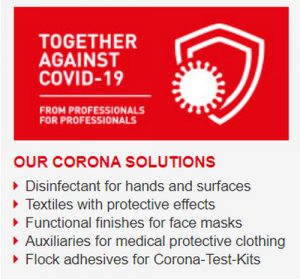 CHT is cooperating with HeiQ by implementing the HeiQ Viroblock by CHT in the textile industry, globally. Ralf Kattanek, VP Textiles of CHT Group underlines a statement of Carlo Centonze, Swiss co-founder and Chief Executive Officer of HeiQ Group, “The confirmation of antiviral activity of HeiQ Viroblock against SARS-CoV-2 is an important milestone. This data forms part of our ongoing efforts to help provide textiles with greater levels of protection against viruses and contribute to efforts towards mitigation of the global pandemic.”