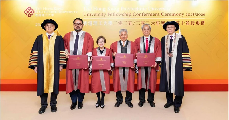 The Hong Kong Polytechnic University (PolyU) recognized four exceptional leaders with its prestigious University Fellowship at a ceremony held on 21 January 2026 at the Jockey Club Auditorium. The honor acknowledges their transformative contributions to both the University and the broader community.
