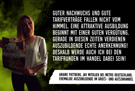 In the upcoming collective bargaining rounds in wholesale and foreign trade and in retail and mail order we will take the collective bargaining rebellion onto the streets for our demand for higher training pay!