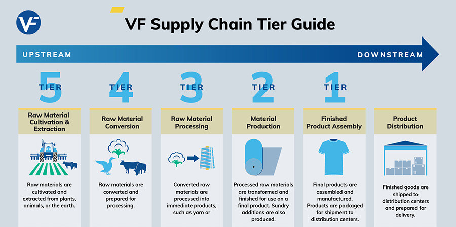 DENVER – January 14, 2021 – VF Corporation (NYSE: VFC), one of the world’s largest apparel, footwear and accessories companies, enhanced its traceability mapping program today by disclosing Tier 1 through Tier 4 supplier information in a consolidated, downloadable file, providing an unprecedented level of industry transparency. Offering supply chain visibility through Tier 4 suppliers further demonstrates the company’s commitment to continuous improvement and increasing transparency as outlined in its corporate sustainability and responsibility strategy, Made for Change.