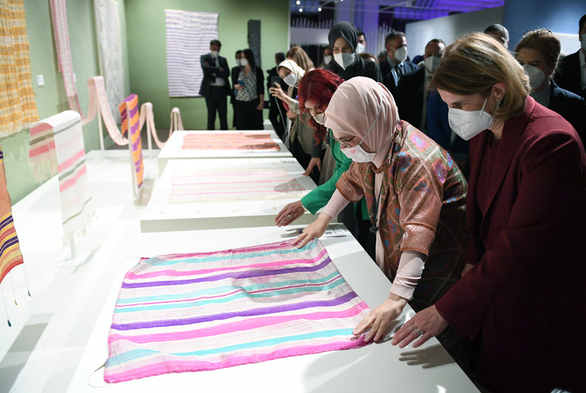 Expressing that weaving is the companion of human life and that all the turning points of life gain meaning with weaving, First Lady Erdoğan said: “Weaving does not consist only of threads and patterns, the Turkish weaving carries deep traces of the adventure of the nation. Weavings that became famous in the Seljuk and Ottoman periods were known as “Turkish Fabric” in the world,” she added.