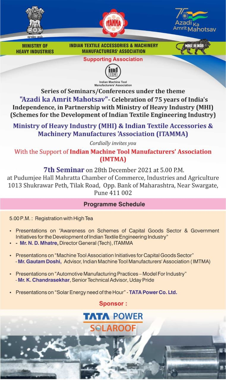 Ministry of Heavy Industry (MHI) & Indian Textile Accessories & Machinery Manufactures’ Association (ITAMMA) Cordially invites you