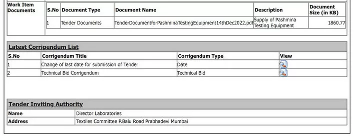 Those interested can access the tender document at https://eprocure.gov.in/eprocure/app Just click this link and search for Pashmina. The link of the following tender document will appear.