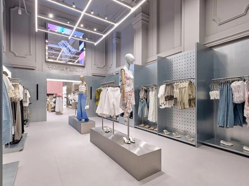The brand’s identity shines through in everything it touches. Music isn’t just background noise—it’s woven into the DNA of Bershka, with curated playlists, artist collaborations, partnerships with platforms like NTS Radio and Dice, and immersive in-store sound experiences that turn shopping into a cultural event. Stores themselves are thoughtfully designed modern spaces using wood, ceramic, stone, and lacquered surfaces in neutral tones that let the vibrant clothing take center stage. Custom acoustic elements create an energetic atmosphere, while textured stone facades make a striking first impression from the street.