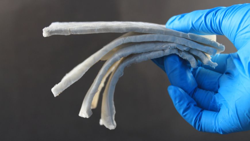 Empa researchers combined cellulose-based aerogels with silver nanowires. The flexible composite blocks high-frequency electromagnetic radiation, which is traditionally achieved by using inflexible metal sheets or metallized foils. This ultra-light electromagnetic shielding material can be used to protect electronic components or the transmission of signals from electromagnetic fields caused by neighbouring electronic devices or motors.
