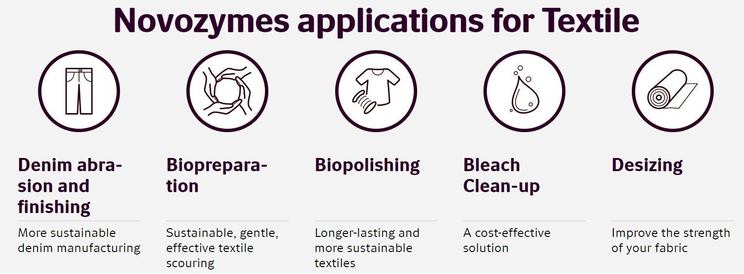 Novozymes applications for Textile processingEnzymes are proteins with highly specialized catalytic functions, produced by all living organisms. Enzymes are responsible for many essential biochemical reactions in microorganisms, plants, animals, and human beings. Enzymes are essential for all metabolic processes.