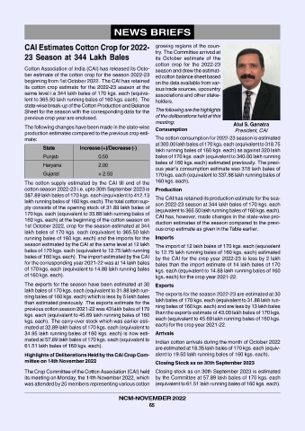 Highlights of Deliberations Held by the CAI Crop Com- alent to 19.50 lakh running bales of 160 kgs. each).