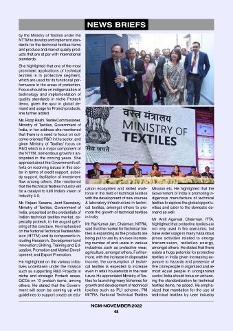 Mr. Rajeev Saxena, Joint Secretary, & laboratory infrastructure in techni- textiles to explore the global opportu-