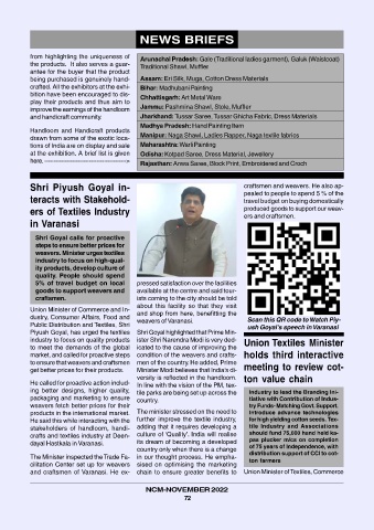 Shri Piyush Goyal in- craftsmen and weavers. He also ap-