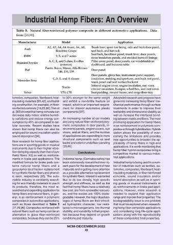 sumption by 45% as compared to cel- are using natural fiber-reinforced poly- promising application for hemp fibers