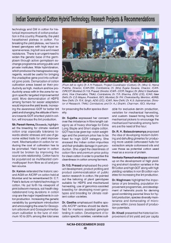 cotton. He put forth his viewpoint of harvesting, use of genomics assisted provement programmes, and develop-