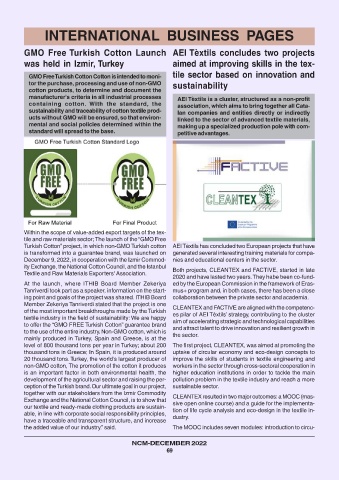 GMO Free Turkish Cotton Launch AEI Tèxtils concludes two projects