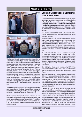 motion and development of handicrafts sector under “Na- He further informed that CITI is directly undertaking Cot-